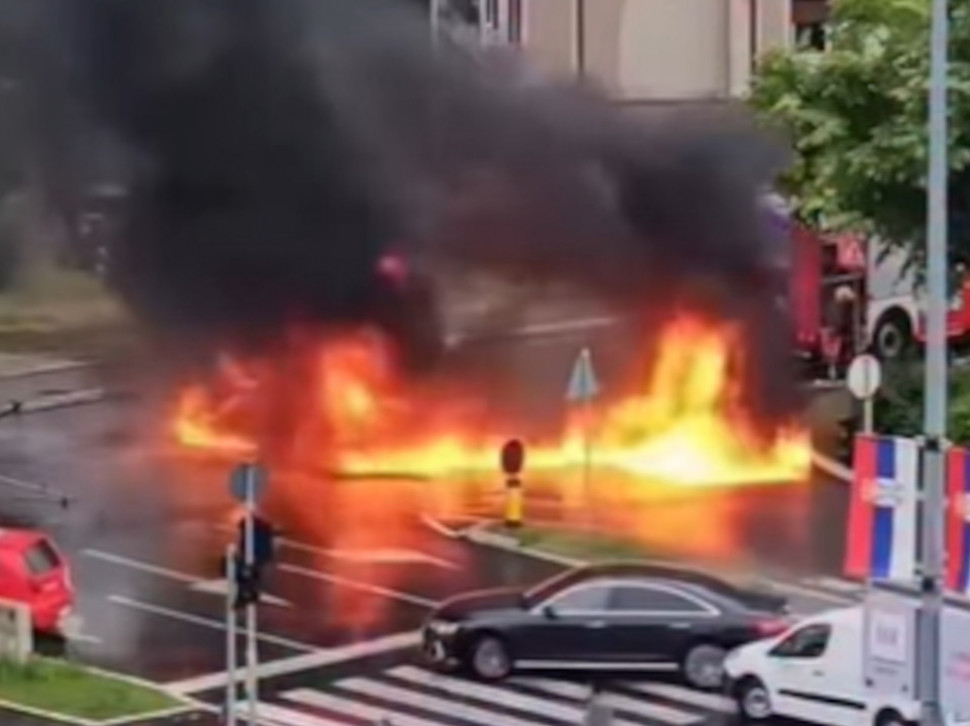 Vozilo je bilo u pokretu u trenutku izbijanja požara, a gorivo se prolilo po putu.