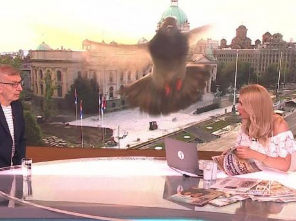 Usred teme u vremenskim prilikama tokom narednog leta, na trenutak je pažnju gledalaca, ali i voditeljke Bojane Ristivojević, ukrao golub koji je leteo oko kamere koja snima centar Beograda i pogled na Narodnu skupštinu.