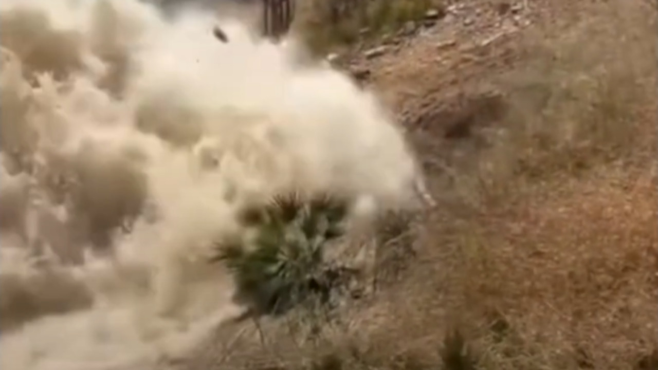 Nekoliko trenutaka kasnije, gusta smeđa mrlja se pojavila preko talasa ispred turista, a jedan od njih je snimio trenutak kad je cev eksplodirala.