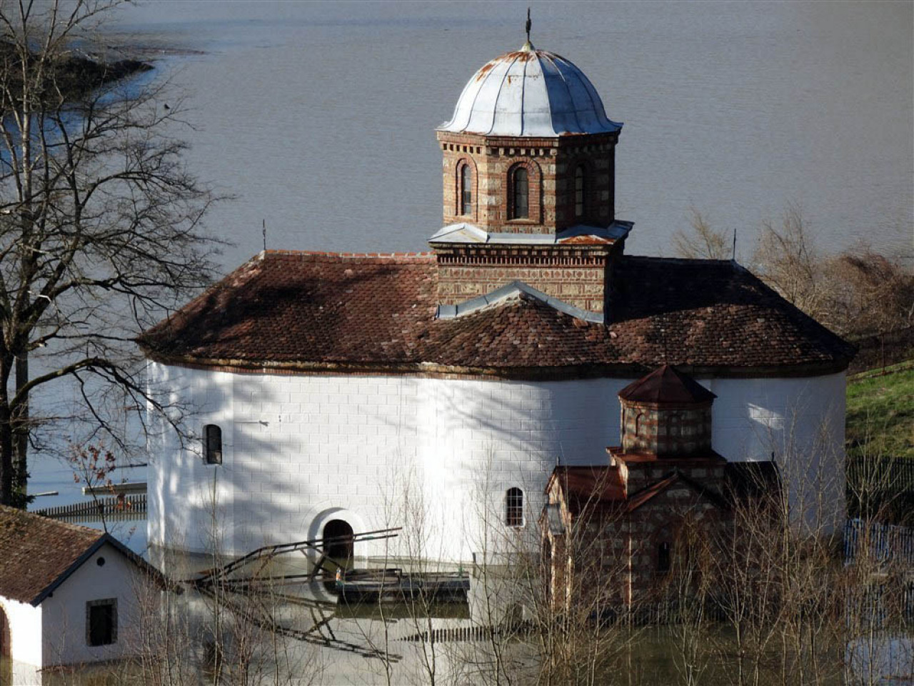 O toj građevini nema mnogo podataka, ali je najverovatnije manastir u nekom momentu stradao. Crkva, koja je potopljena 2016. godine, sazidana je nakon Drugog srpskog ustanka po uzoru na crkve brvnare. Prvi pisani podatak o njoj ostavio je Joakim Vujić, 1826. godine. Poslednje promene na crkvi izvedene su 1930. godine, kada je izgrađeno kube u neovizantijskom stilu. Na crkvi se nalazilo zvono iz 1860. godine.
