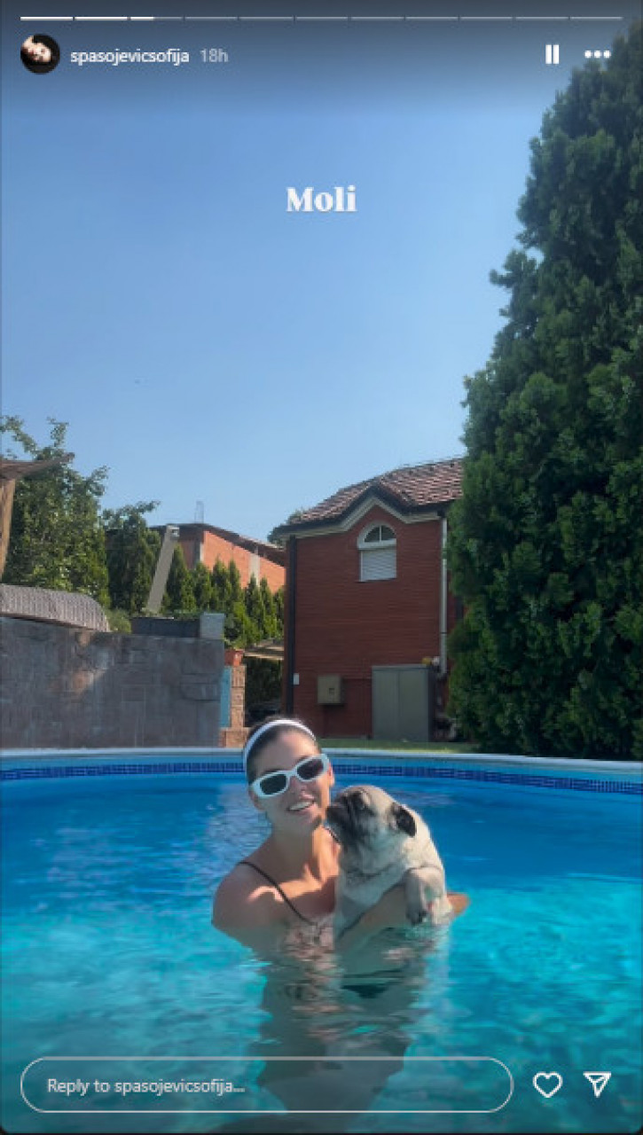 U Monaku su proslavili Sofijin rođendan, a sada su se zbog obaveza vratili u Beograd. Viktorova devojka objavila je fotografije na Instagramu kako uživa u bazenu porodične vile Živojinović na Bežaniji. Društvo joj je pravio ljubimac Lepe Brene koji je sve vreme Sofiju lizao po licu.