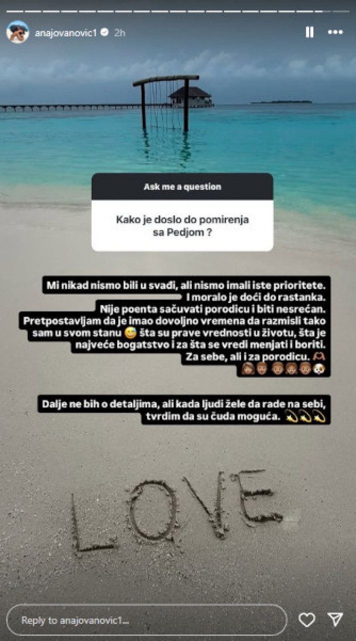 Par je svoju romansu rešio da obnovi po četvri put, prevazišli su bračnu krizu. Sada je Ana putem društvenih mreža otkrila kako je došlo do pomirenja sa mužem.