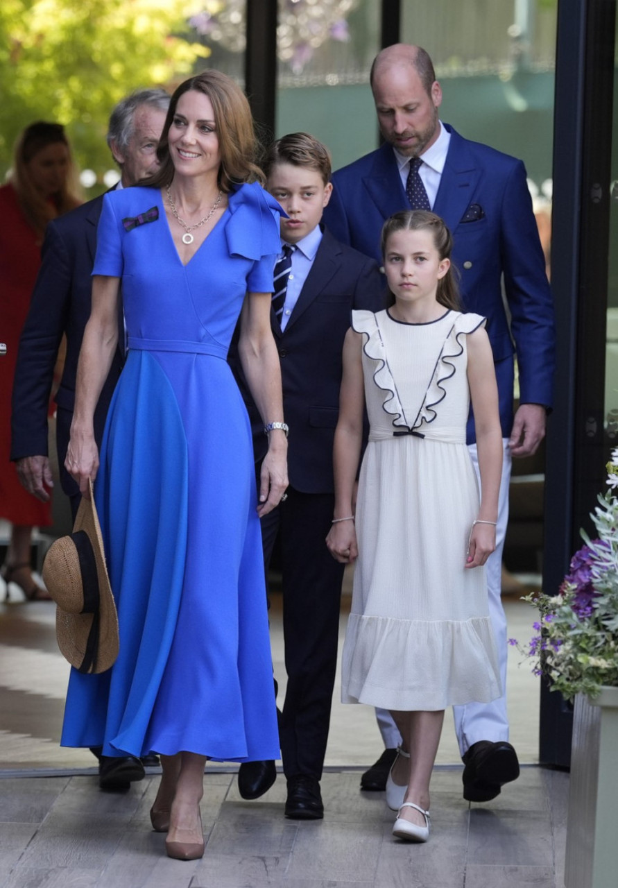 Kejt Midlton je, uprkos zdravstvenim problemima, na Vimbldonu zablistala u nežnoj letnjoj haljini, a cela porodica bila je usklađena u nijansama plave. Princ Vilijam i mali DŽordž nosili su elegantna odela sa kravatama, dok su Kejt i Šarlot ponele lepršave letnje haljine, sa plavom mašnicom u Šarlotinoj kosi koja je savršeno pratila maminu kombinaciju.