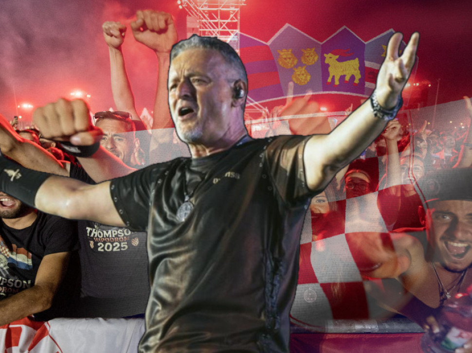Na slici se takođe vidi zastava sa istim simbolima, a prema dostupnim informacijama, fotografija je nastala uoči koncerta Marka Perkovića Tompsona.