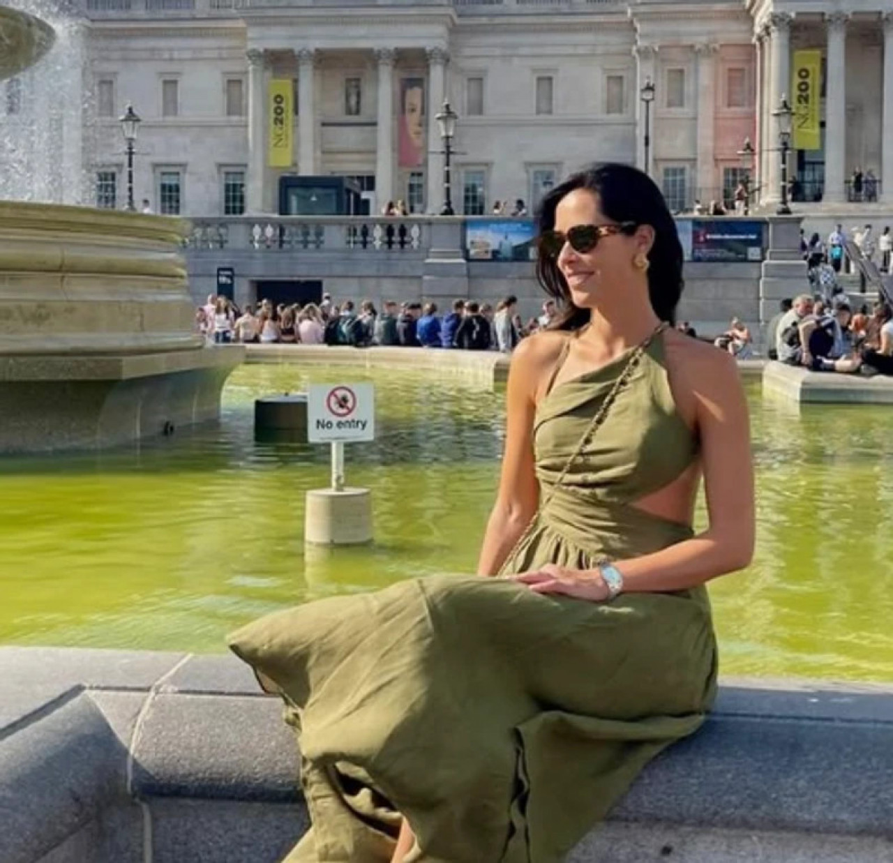 Ona je pokazala kako u zelenoj haljini sa golim ramenima i leđima, u patikama, obilazi blokove Londona.