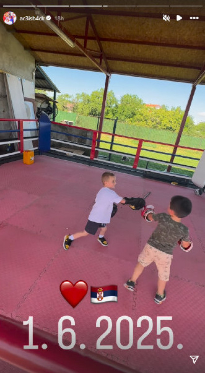 U blizini kuće nalazi se i bokserski ring, koji više nije rezervisan samo za Veljkove pripreme. NJegov najstariji sin, mali Željko, već pokazuje interesovanje za borilačke veštine. Na snimku koji je Veljko podelio, vidi se kako mališan, sa rukavicama na rukama, sparinguje sa drugarom, dok ih tata usmerava, savetuje i podučava pravilima sportskog ponašanja. Na kraju treninga, podstakao ih je da se pozdrave kao pravi sportisti – uz zagrljaj.