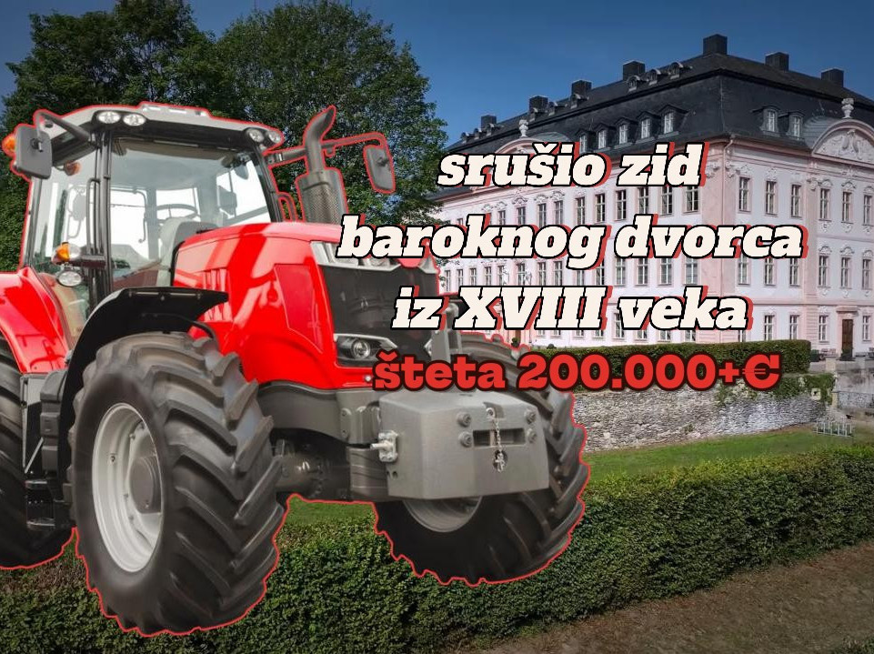 Upravljajući traktorom, a usled nedostatka iskustva, osamnaestogodišnji mladić je srušio deo zida dvorca iz 18. veka, danas luksuznog hotela.