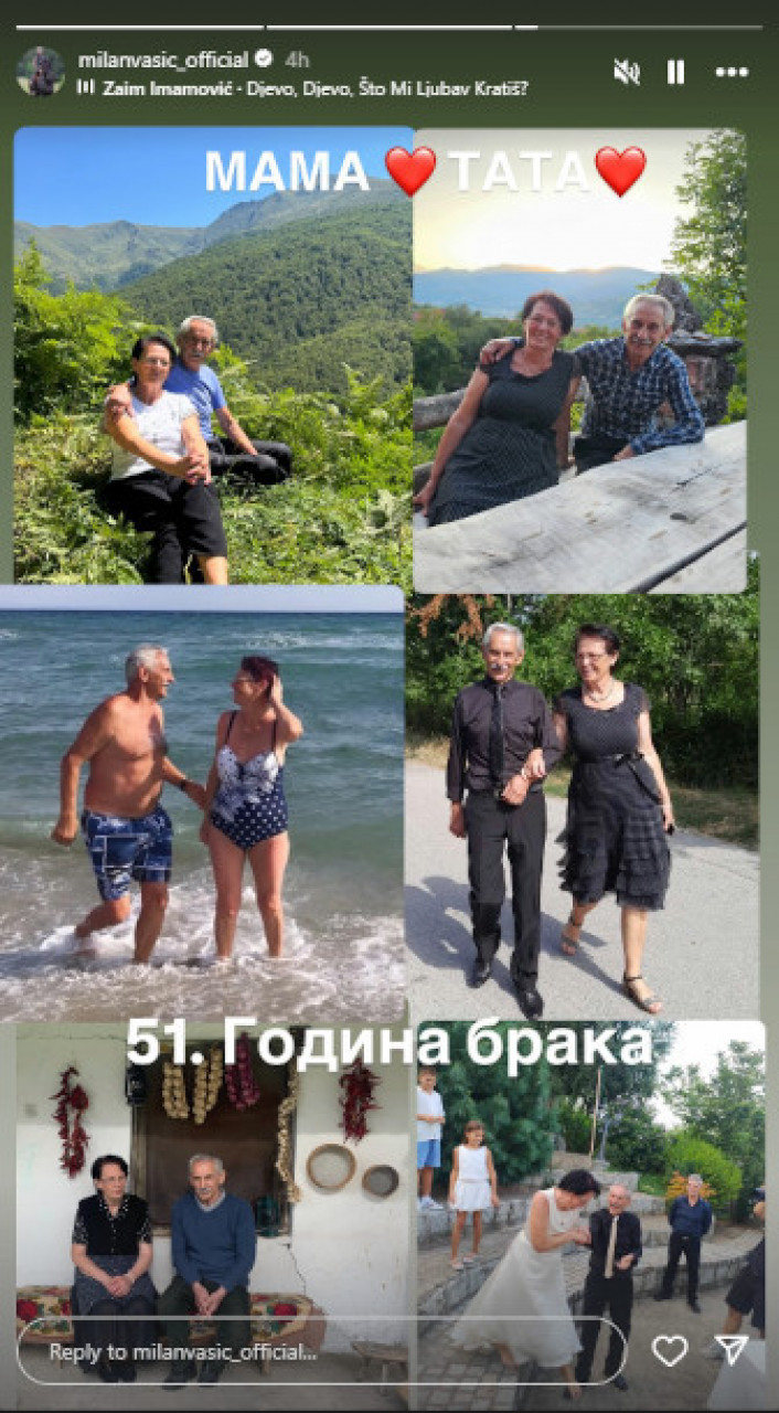 Milan je na svom Instagram profilu objavio njihove privatne i do sada neviđenje fotografije uz koje je samo kratko napisao: "Mama i tata. 51. godišnjica braka".