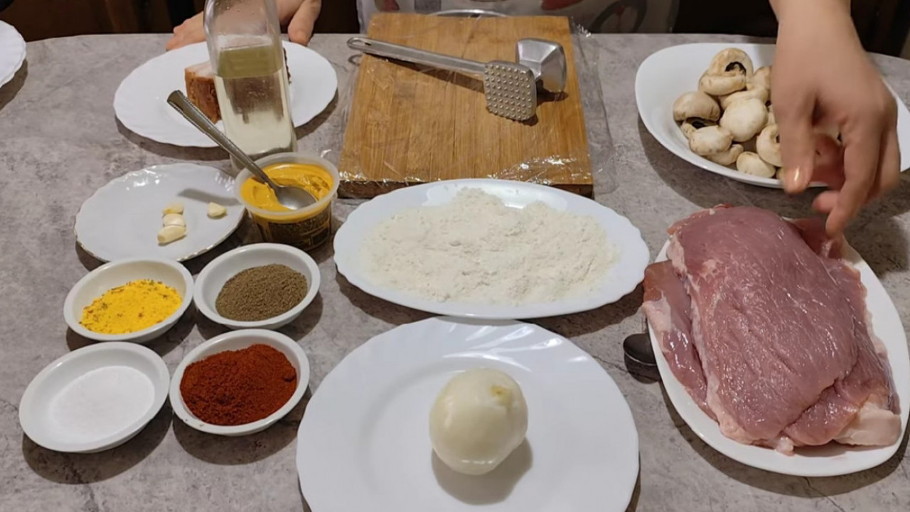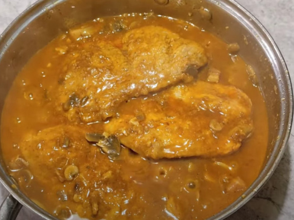 Posolite šnicle po ukusu, pa ih uvaljajte u brašno i pržite s obe strane da porumene. Izvadite na ubrus. U istoj šerpi propržite iseckan crni i beli luk. U vreloj vodi razmutite kocku za supu pa dodajte u šerpu. Dodajte mlevenu papriku i kašiku brašna pa promešajte da ne bude grudvica. Vratite šnicle u šerpu i ostavite da se dinstaju sat vremena.