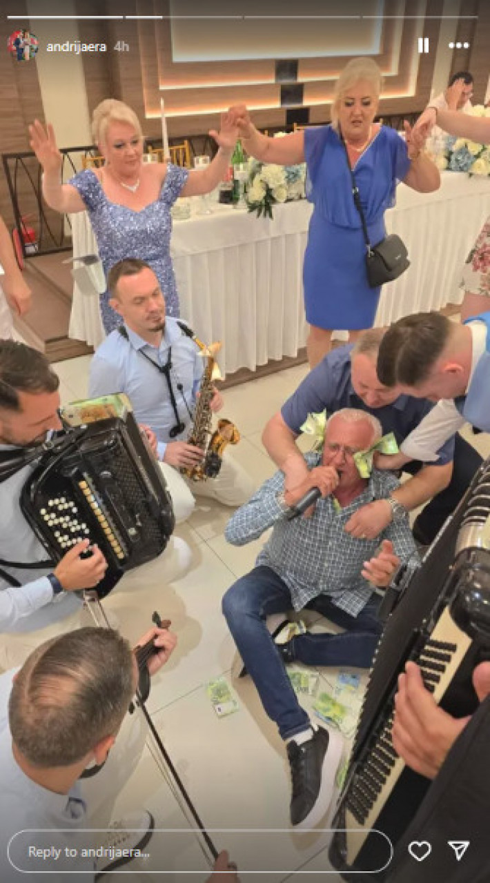 Sada je pevao na jednom veljelju, a novčanice su bile svuda oko njega, na čelu, u rukama, na podu, na muzičarima. Na Instagramu su se pojavile fotografije sa veselja. U jednom trenutku se pevač umorio pa je seo na pod. Mnogi su rekli da se "valja u parama".