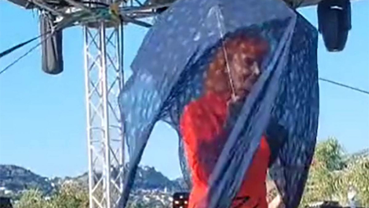 Pevačica je na probu kako bi se sačuvala od sunca došla s kišobranom, a preko kišobrana je stavila i maramu kako bi u potpunosti bila sigurna da joj sunca neće naštetiti.