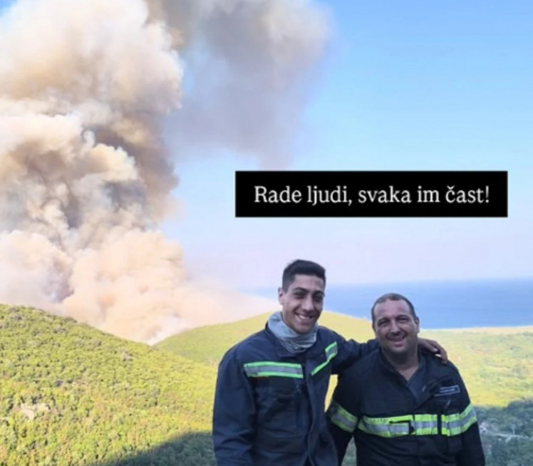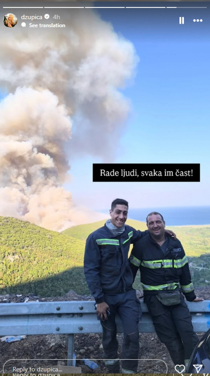 Glumica je objavila snimak izbliza kako kulja ogroman dim, a veliku pažnju privukla je slika vatrogasaca, koji su pozirali zagrljeni.
