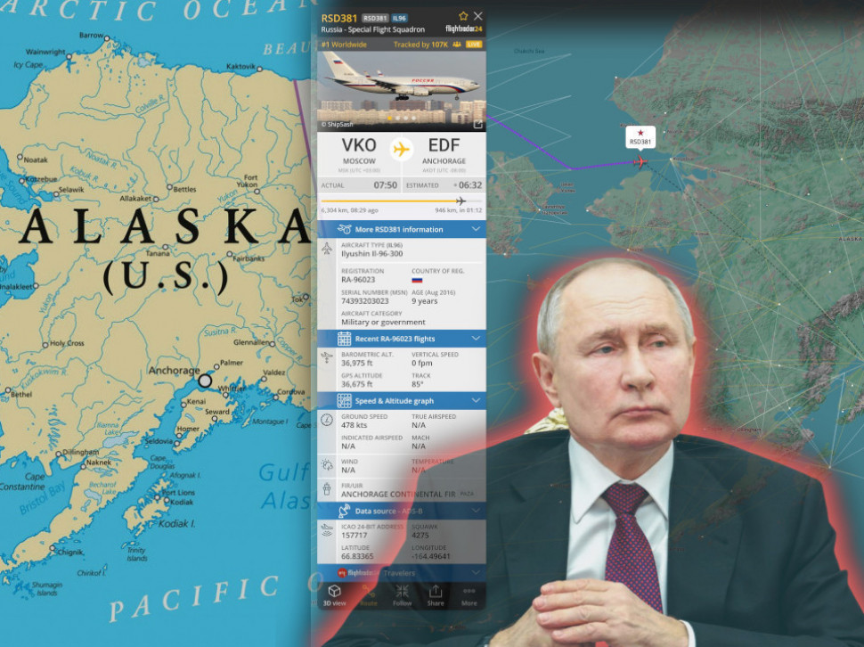 Avion koji je prevozio Vladimira Putina i druge ruske vladine zvaničnike sleteo je u Ankoridž na Aljasci, prema podacima Flightradar24.