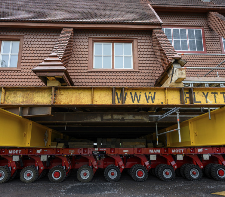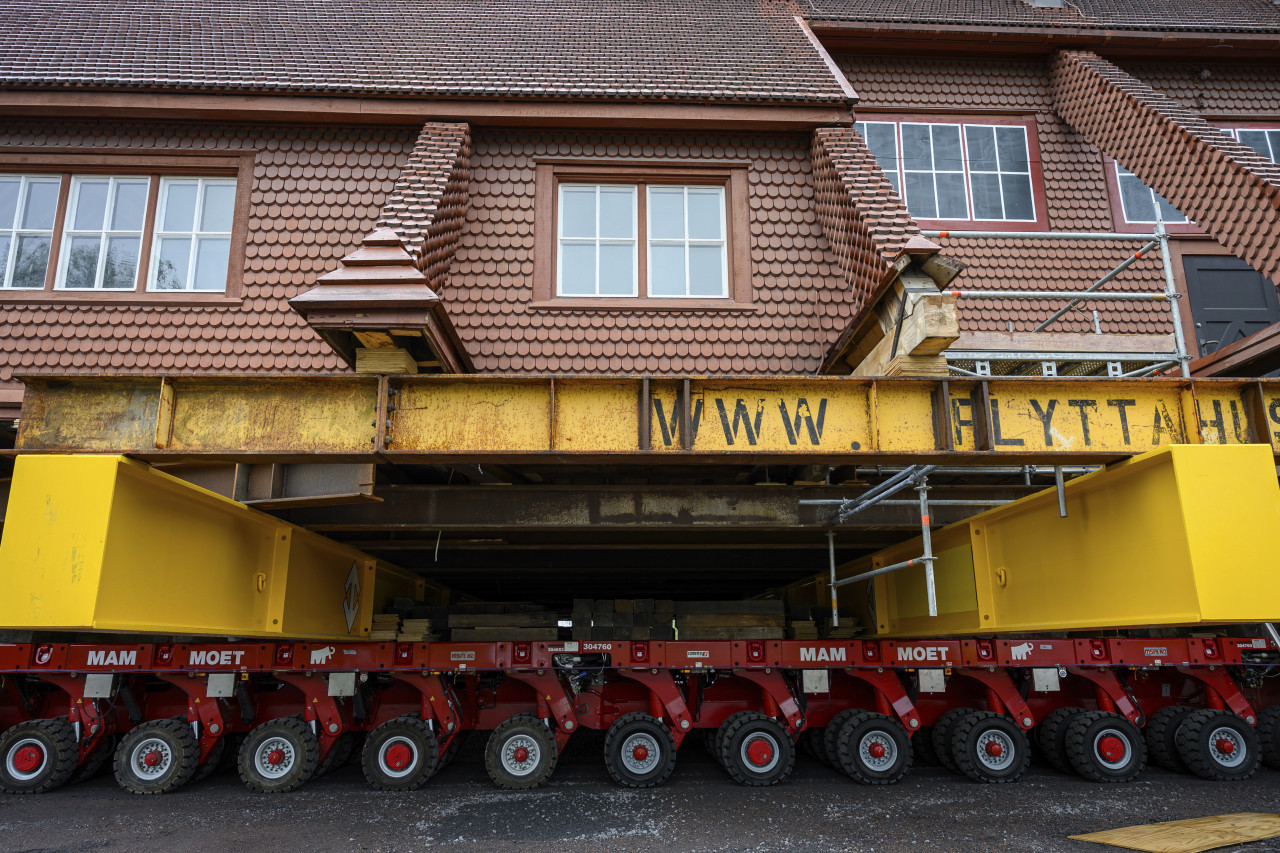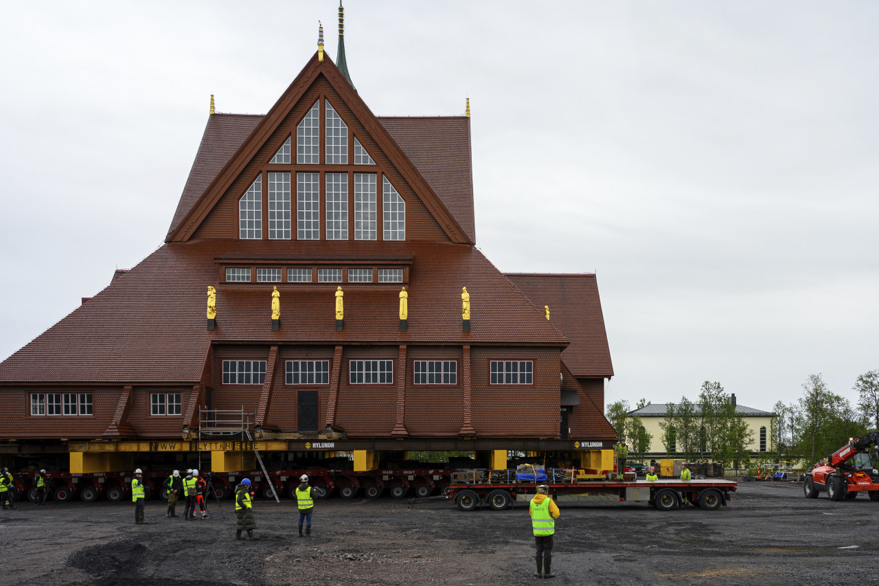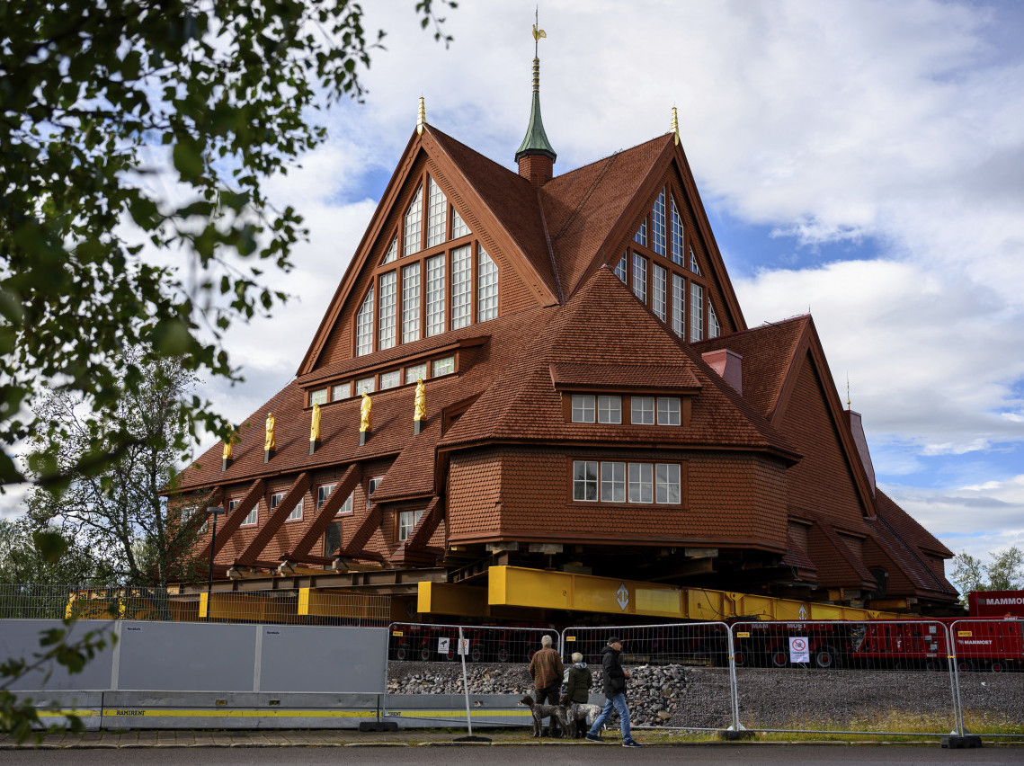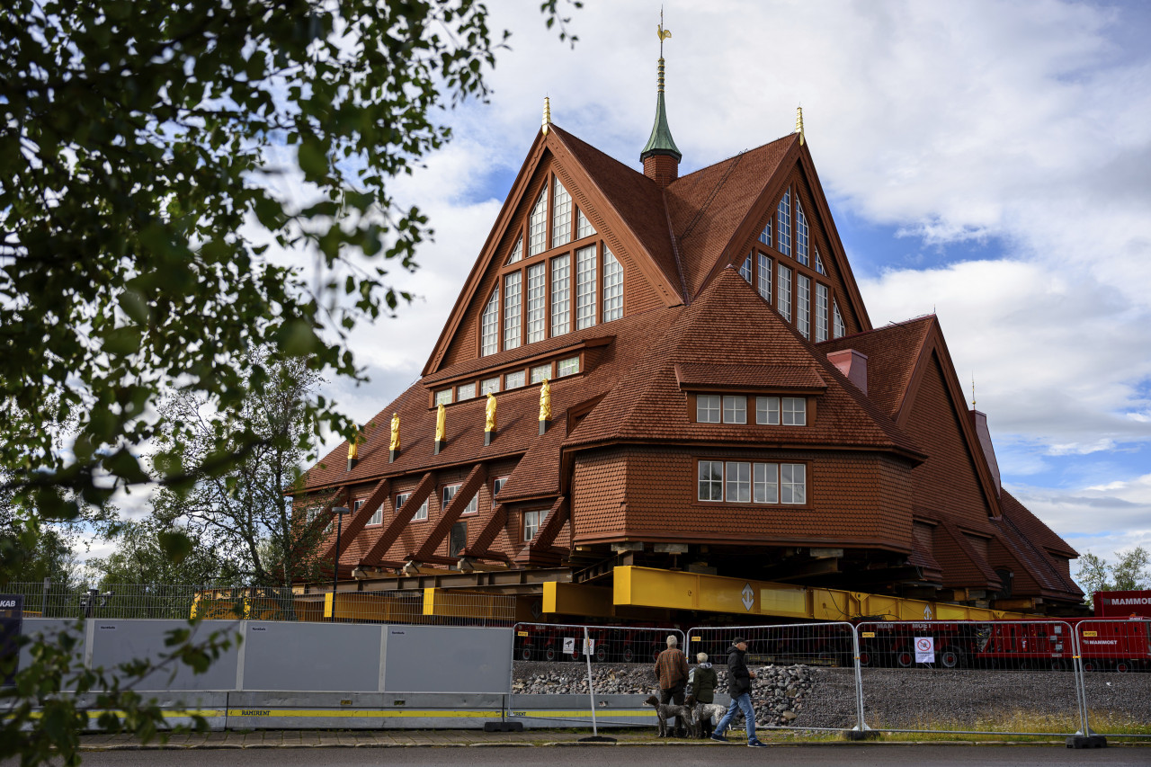 Velika drvena građevina, visoka 35 metara i teška 672 tone, podignuta je na pokretne platforme i trebalo bi da bude premeštena u centar grada, udaljen pet kilometara.