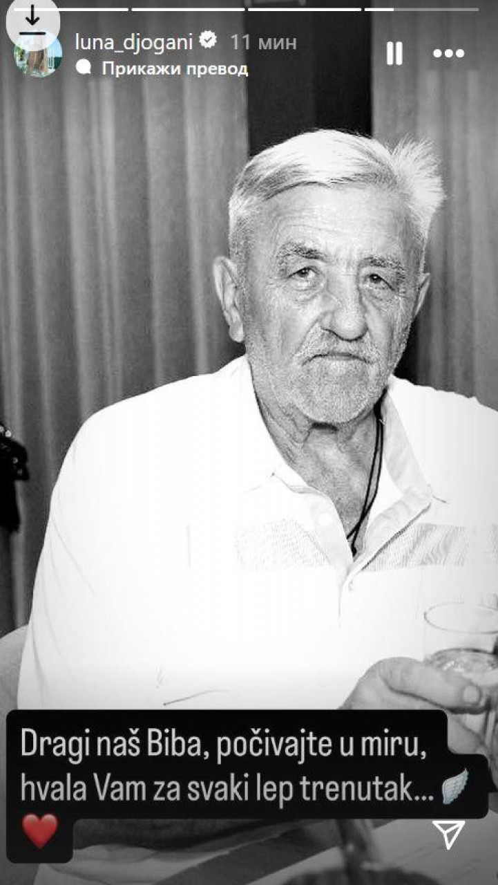 - Dragi naš Biba, počivajte u miru, hvala vam za svaki lep trenutak - napisala je Luna uz njegovu fotografiju.