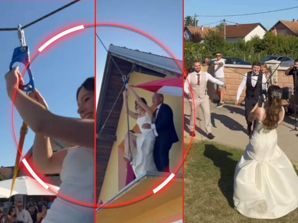 Ovaj neočekivani ulaz zip-lajnom pokazuje kako moderna venčanja postaju prava mala scena gde je impresivan ulaz važniji od same ceremonije.
