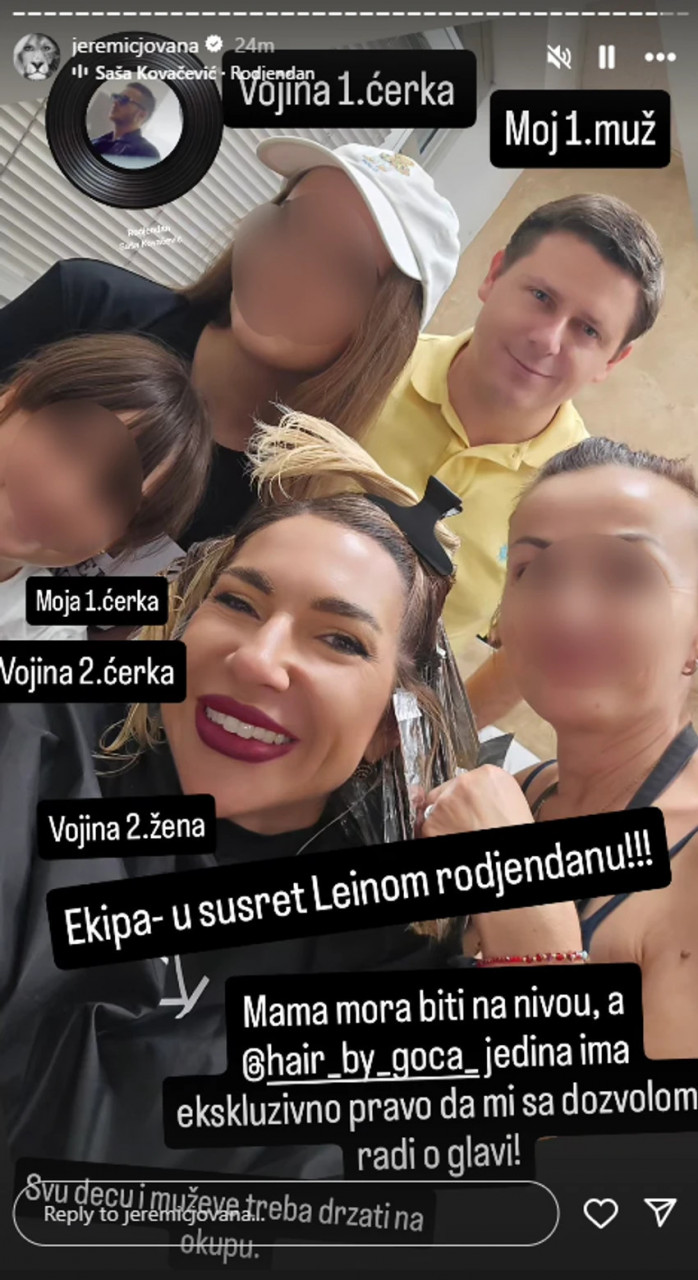 Jovana je tako nedavno na svom profilu na Instagramu pokazala kako se lepo slaže sa Vojom, a tu su bile i njegova ćerka iz prvog braka, kao i njihova ćerka Lea i frizerka.