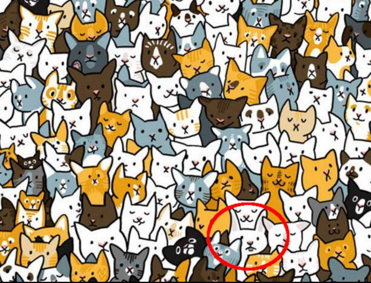 Među gomilom mačaka krije se i jedan zeka, a samo oni sa oštrim okom uspeće da ga pronađu u roku od pet sekundi.