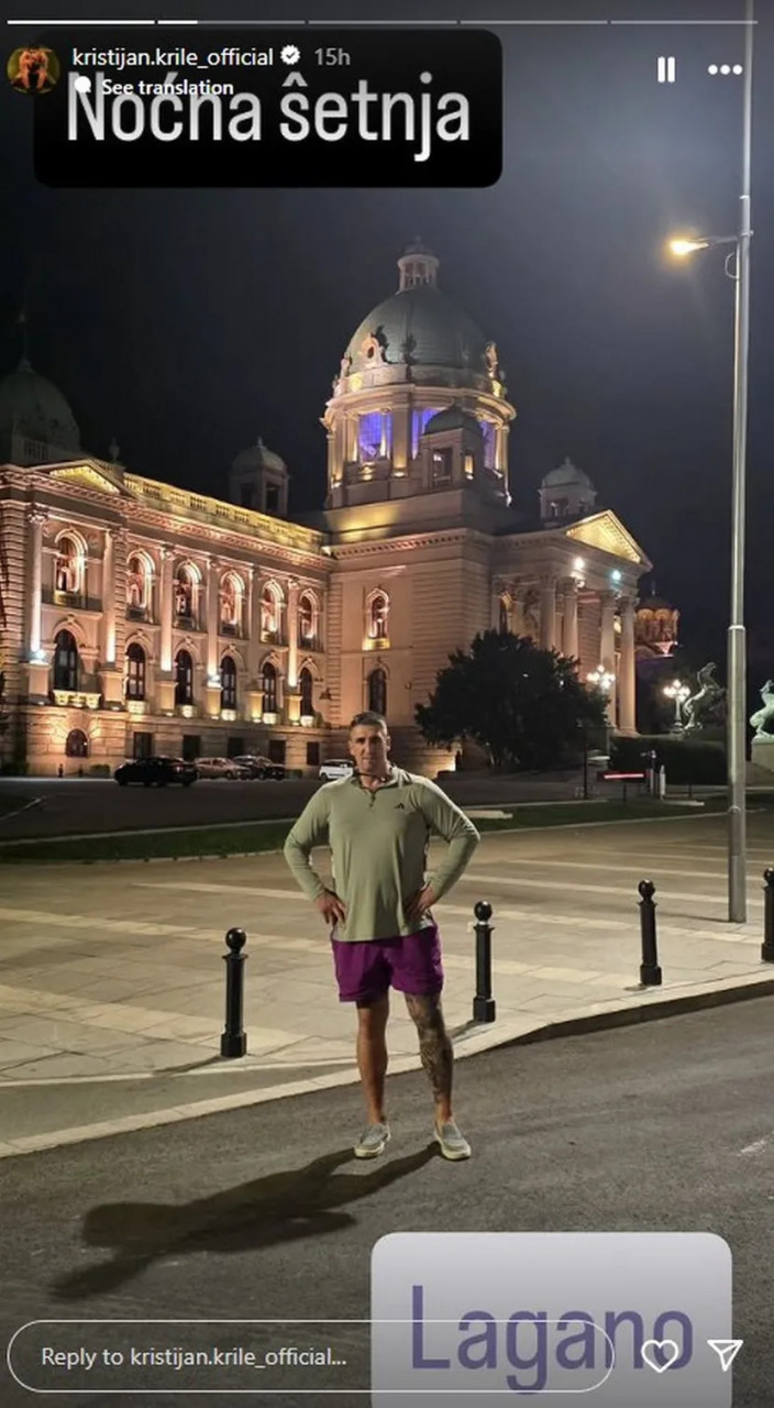 - Noćna šetnja, lagano - napisao je Kristijan, uz snimak treninga u centru Beograda.