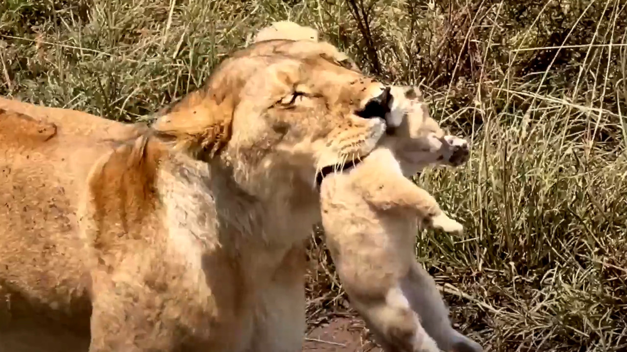 Snimak lavice kako u zubima premešta svoje mladunče na bezbedno u drugu jazbinu nastao je početkom septembra u Nacionalnom parku Serengeti u Tanzaniji.
