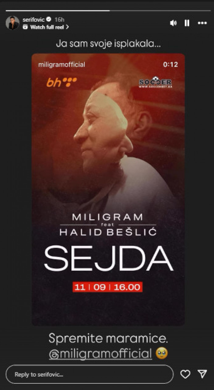 - Imao sam životnu želju napraviti jednu pesmu s Halidom Bešlićem. On je za mene, a i za ceo Balkan, ikona, jedan veliki umetnik i jedna ljudska gromada koja već više od pola veka inspiriše taj duh Bosne i Sarajeva u svom najlepšem svetlu - rekao je Mili na svom Instagramu, nakon čega je dodao: