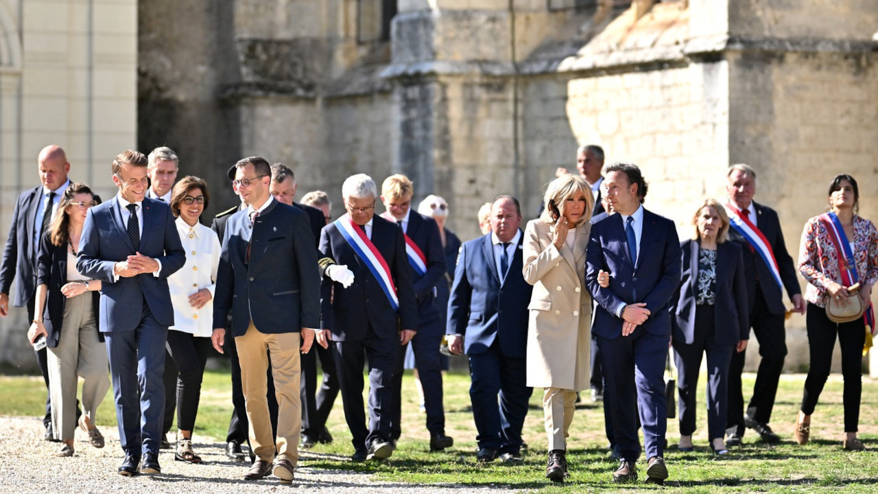 Prva dama Francuske, Brižit Makron (72), juče se pridružila suprugu, predsedniku Emanuelu Makronu (47), tokom zvanične posete školi jahanja u opatiji Pontlevoj.