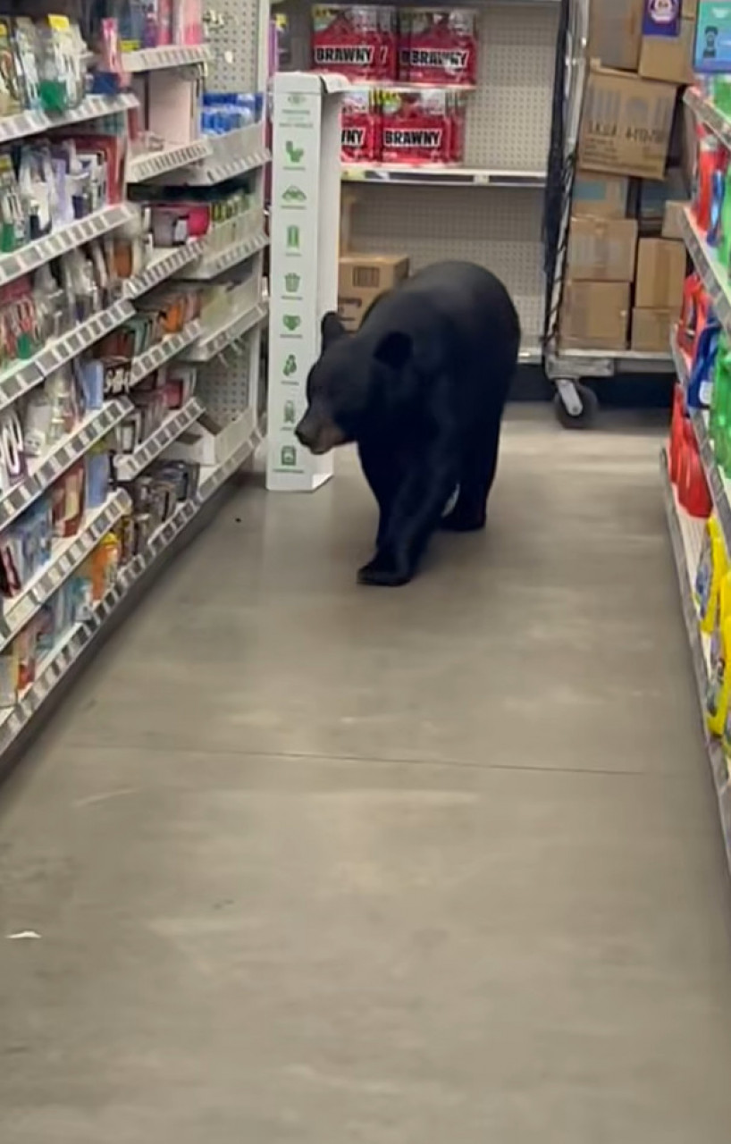 Na videu koji je snimio lokalni agent za nekretnine Šon F. Klarkin, ženka medveda od 77 kilograma šeta kroz prodavnicu dok je svi prestravljeno posmatraju.