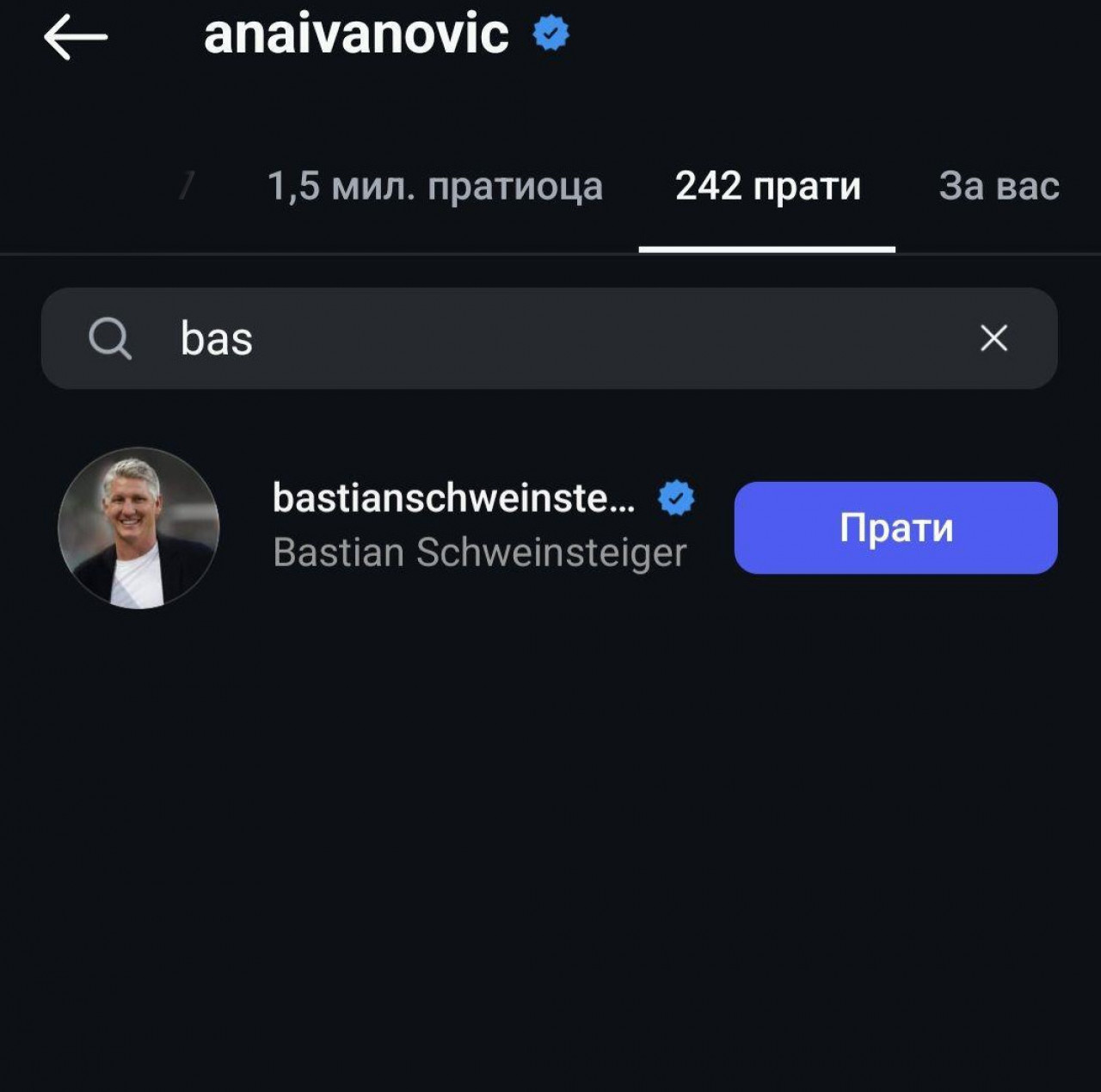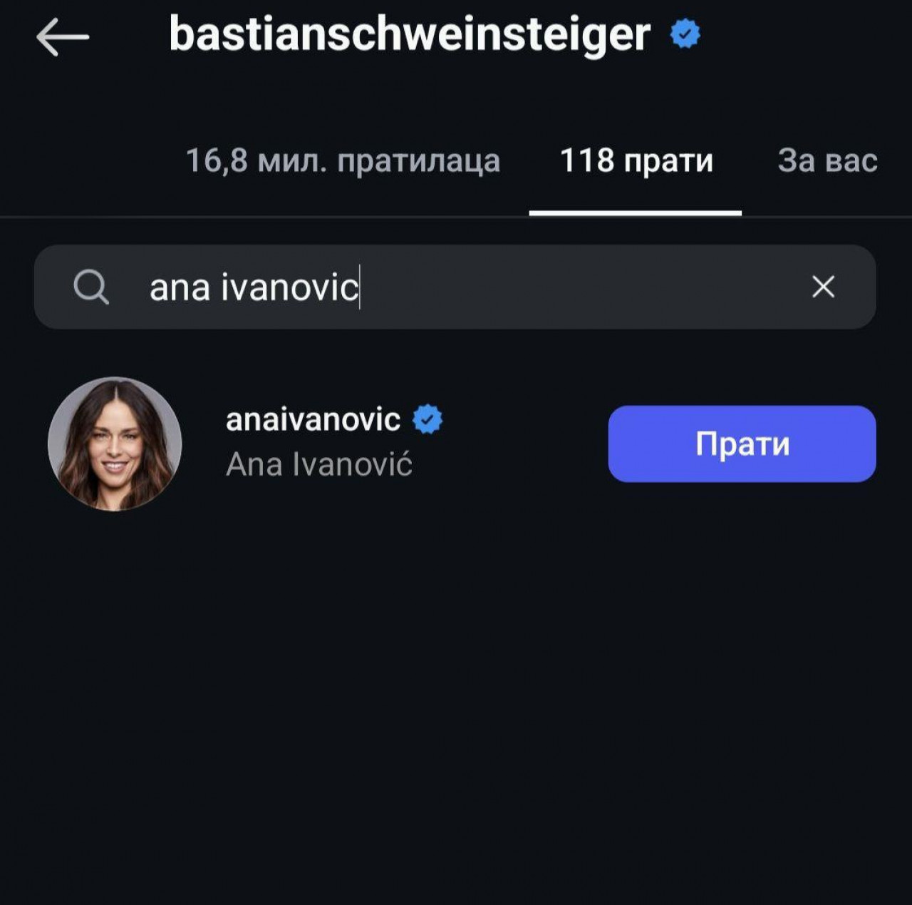 Ipak, Ana nije u potpunosti izbrisala Bastijana, što se jasno može videtu u njenoj listi prijatelja koje prati na Instagramu - i obrnuto.