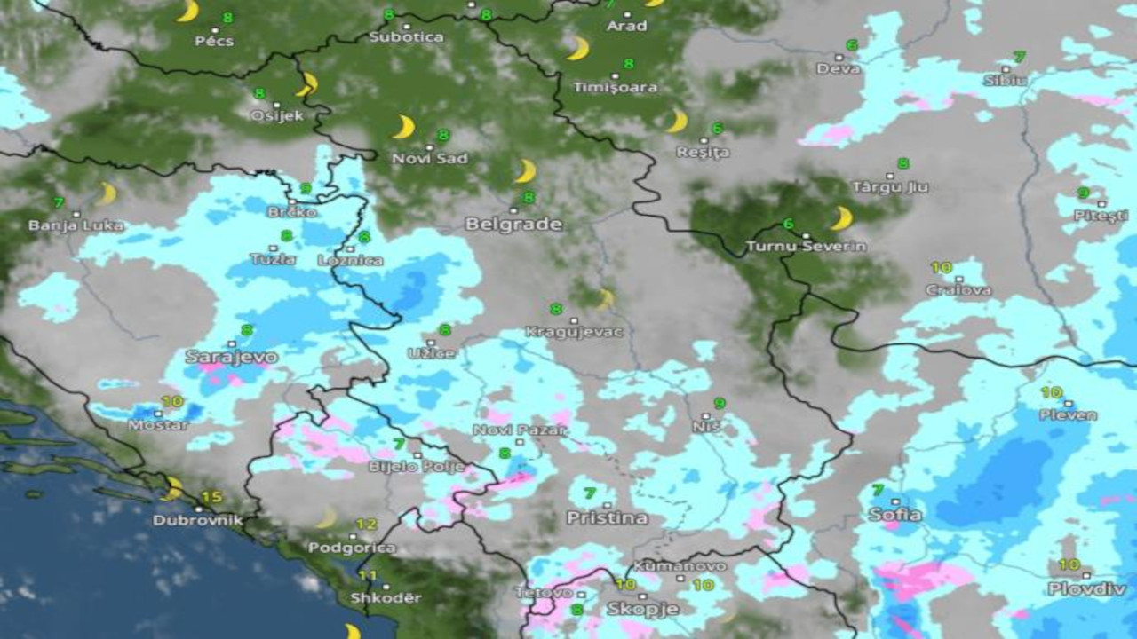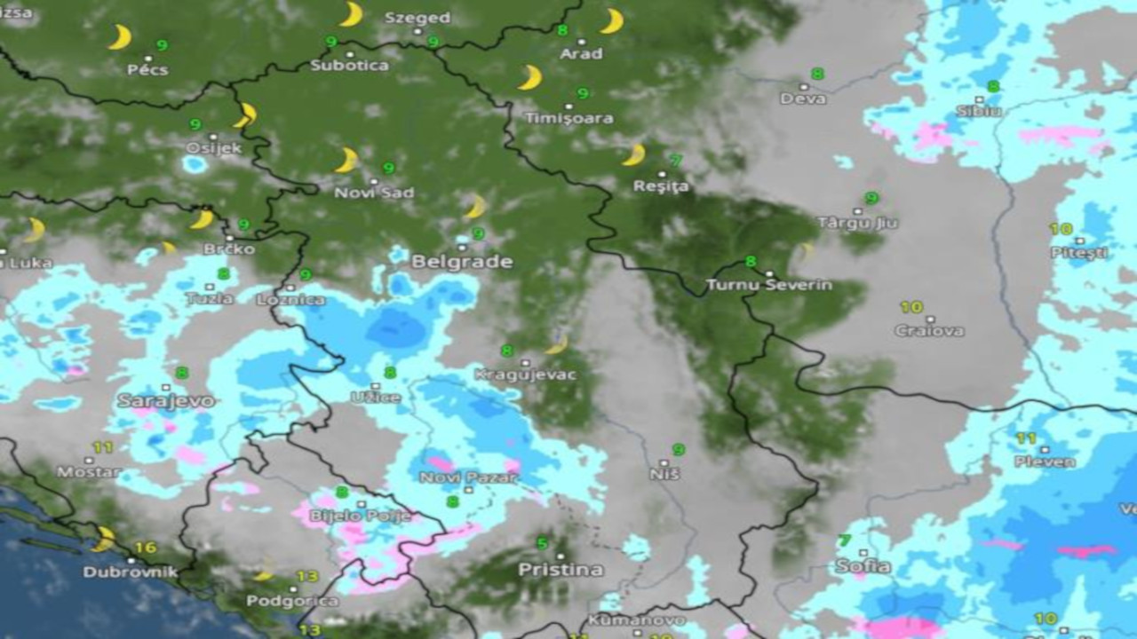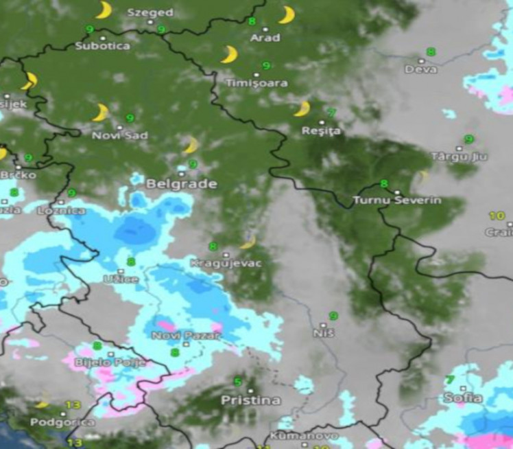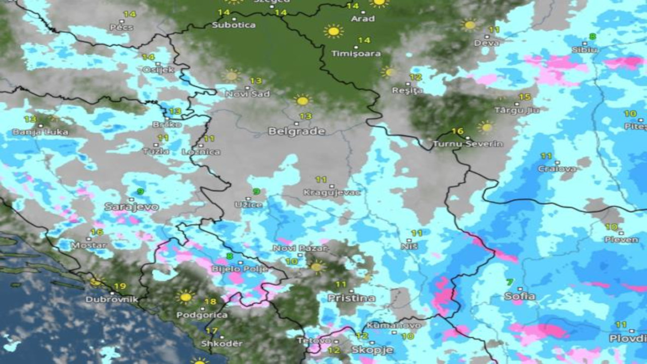 U ostalim krajevima pretežno oblačno, mestimično s kišom, na visokim planinama južne i jugoistočne Srbije ujutro sa slabim snegom.