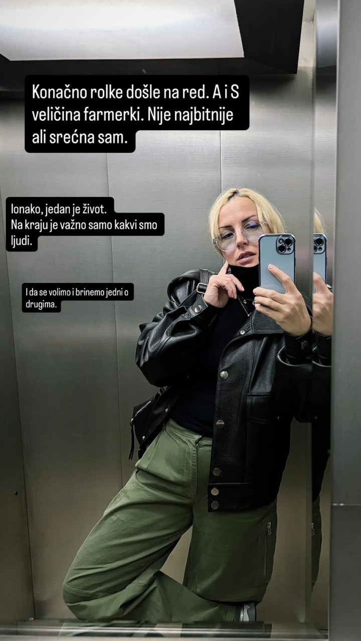 - Konačno rolke došle na red, a i S veličina farmerki. Nije najbitnije, ali srećna sam. Ionako, jedan je život. Na kraju je važno samo kakvi smo ljudi i da se volimo i brinemo jedni o drugima - napisala je ona.