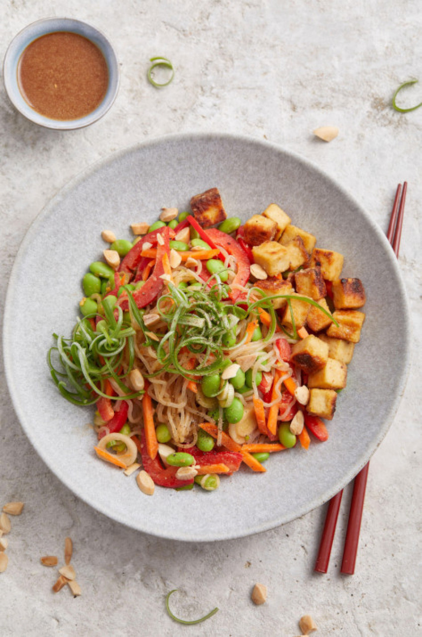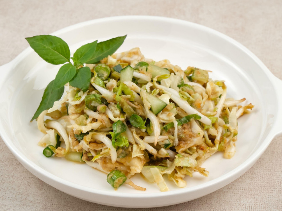 Pomešajte kikiriki, susam, seckanu šunku, a zatim pavlaku i majonez i sve lepo promešajte. Ukrasite salatu sa ostatkom kikirikija. Služite hladno.