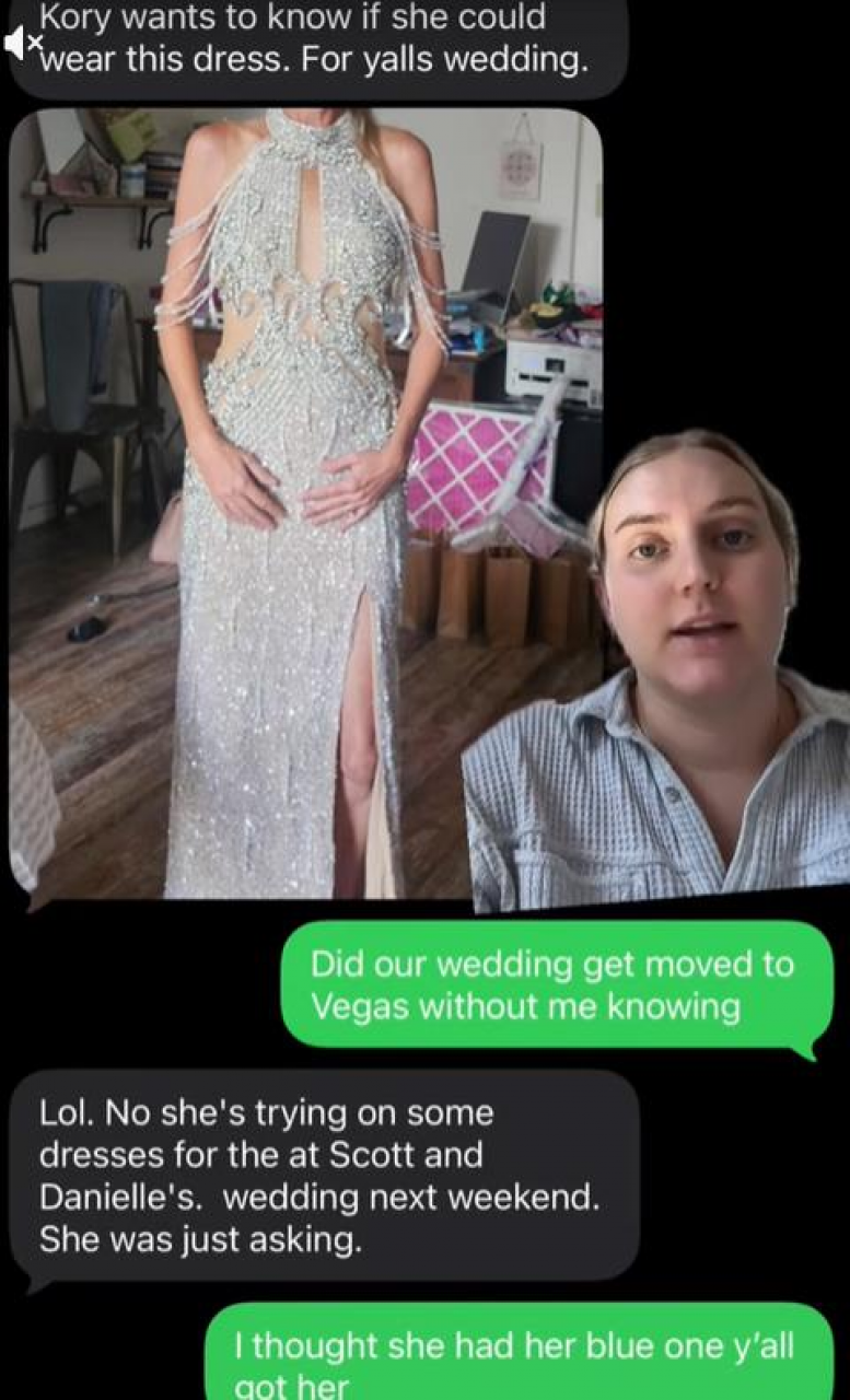 Bajer je u poruci budućem svekru ironično upitala: „Da li je naše venčanje premešteno u Las Vegas, a da ja ne znam?“ jer je pretpostavila da se šali. NJena buduća svekrva, naime, već je ranije izabrala haljinu — elegantnu plavu koja se savršeno uklapala u boje venčanja. Međutim, to nije bila šala.
