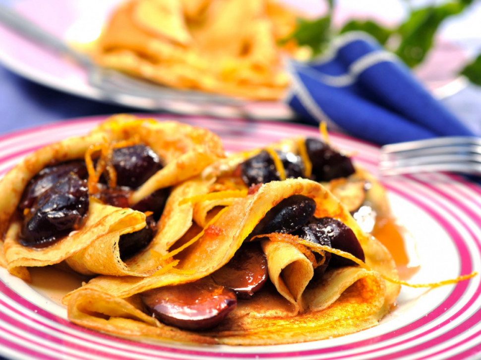 Rernu zagrejte na 200 stepeni. U jednoj posudi umutite jaja, 300 ml mleka, gaziranu vodu, so i brašno. Na malo ulja u tiganju ispecite palačinke pa ih ostavite sa strane. Zatim ih nafilujte sa džemom i orasima, urolajte i poređajte u pleh obložen pek papirom. Sipajte ostatak mleka pa ih pospite sa šećerom i pustite da se natope. Pecite palačinke 20 minuta, u rerni zagrejanoj na 180 stepeni. Zatim pojačajte temperaturu na 200 stepeni, pa dopecite još 5-10 minuta.