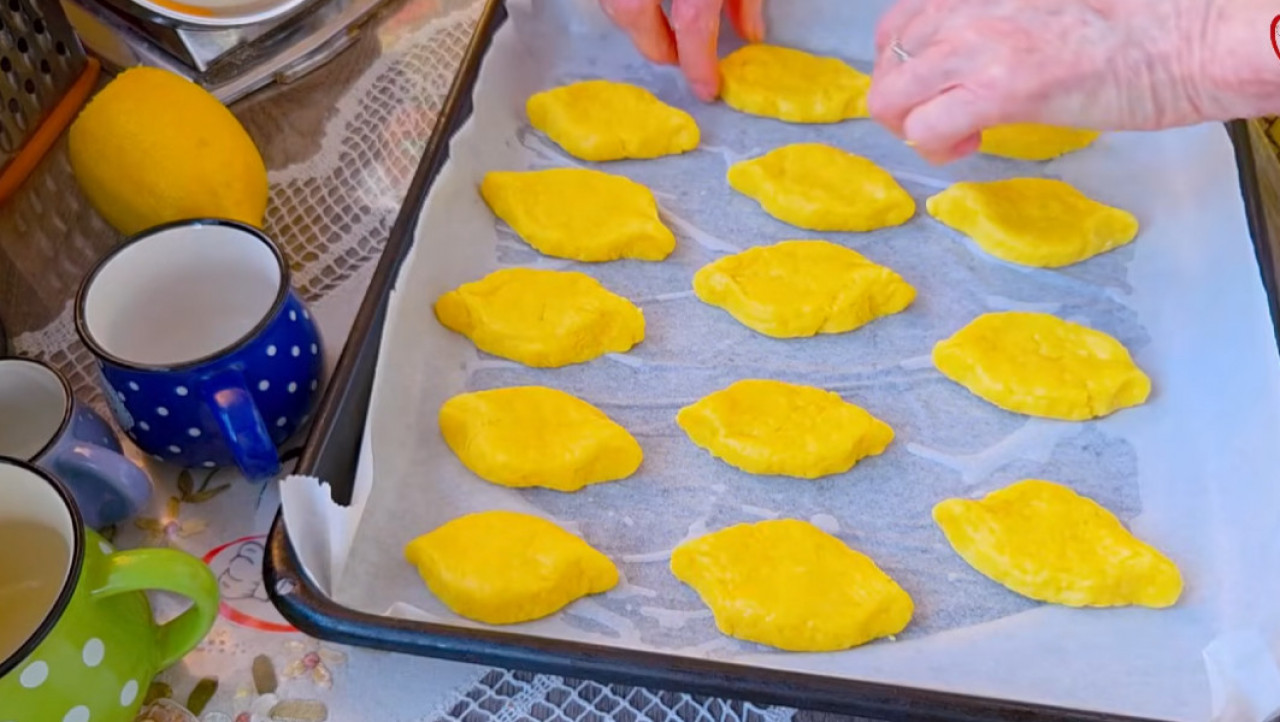 U dlanovima formirajte male kolačiće, blago ih spljoštite i poređajte u pleh.