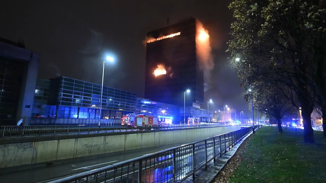 Požar u Vjesnikovom neboderu na Slavonskoj aveniji u Zagrebu, skoro 100 vatrogasaca gasi neprestano već više od osam sati, a prema procenama, vatra će tokom dana biti stavljena pod kontrolu.