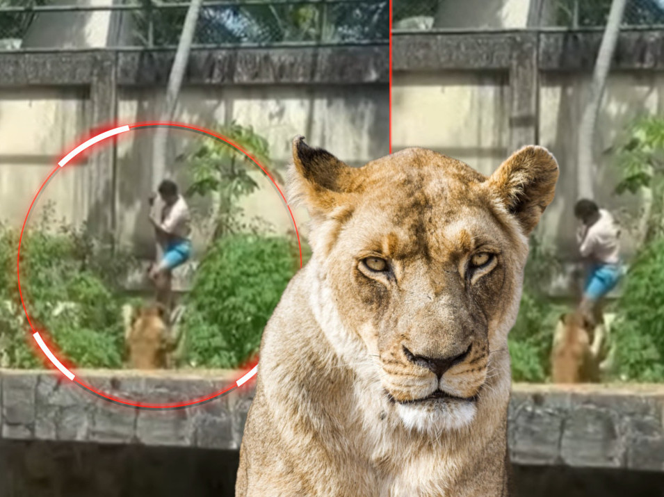 Horor video snimak zabeležio je trenutak kada je lavica, za koju su veterinari zoološkog vrta rekli da je bila „pod stresom“ i „u šoku“ nakon incidenta, nasrnula na njega dok se približavao tlu.