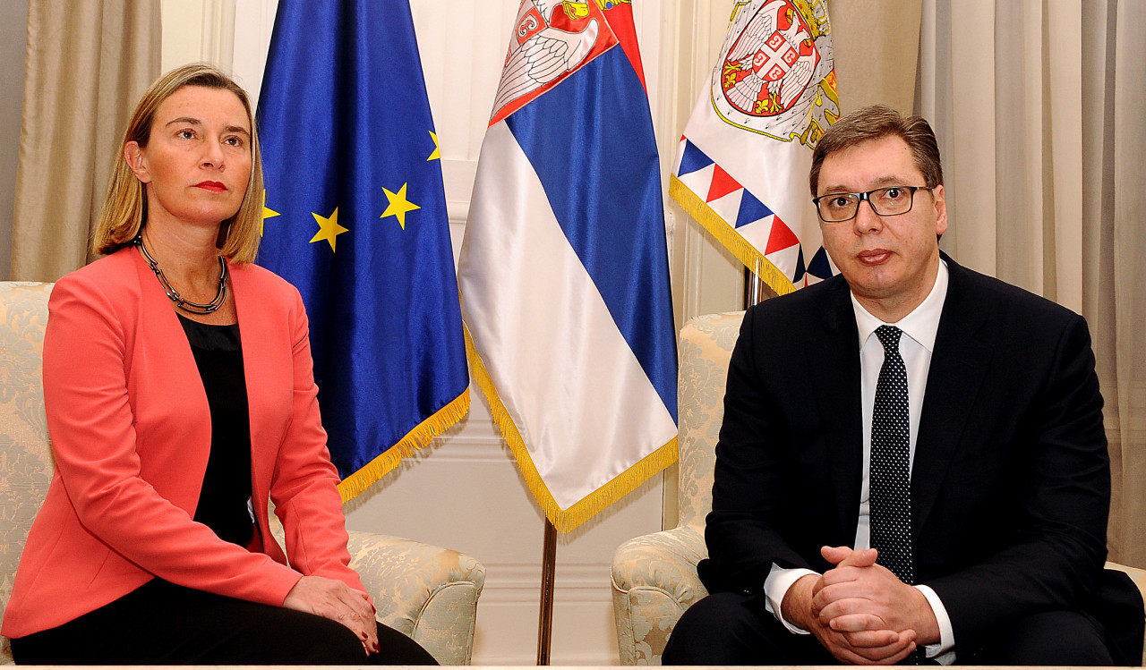 - Mogerini je bila jedan od glavnih posrednika u dijalogu Beograda i Prištine. Više puta je pozivala na sprovođenje Sporazuma o ZSO (Zajednica srpskih opština). Organizovala je ključne runde pregovora i nekoliko sastanaka između predsednika Srbije Aleksandra Vučića i Hašima Tačija