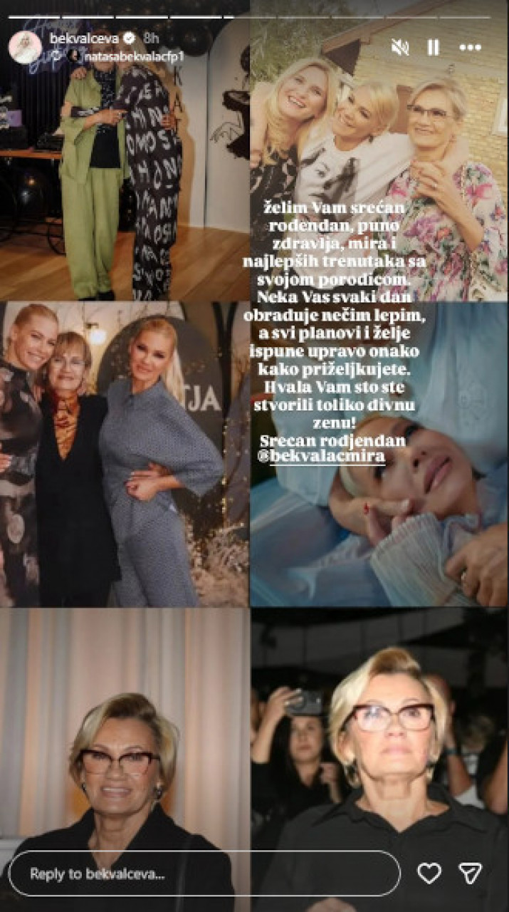 Pevačicina majka, Mira Bekvalac, proslavlja 73. rođendan, a Natašina ćerka, Hana Ikodinović, na mrežama je podelila trenutke sa porodične proslave.