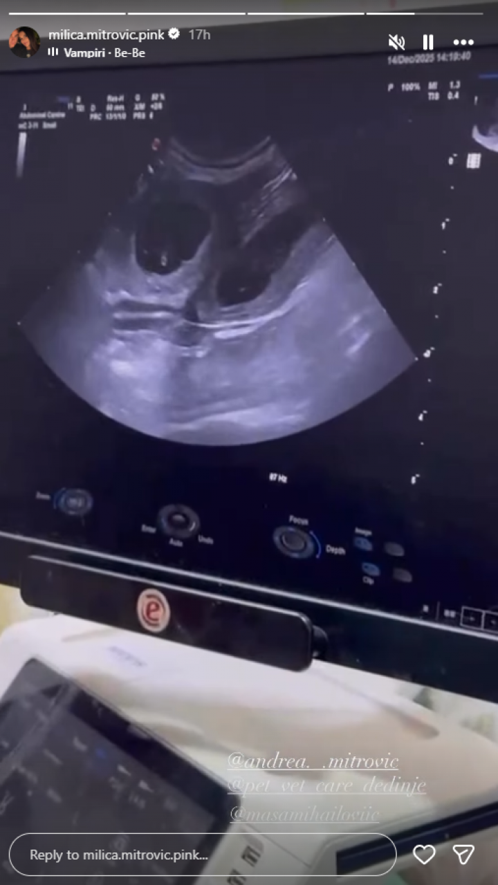 Milica je na Instagramu objavila video ultrazvuka svog ljubimca, označivši ćerku Andreu u snimku.