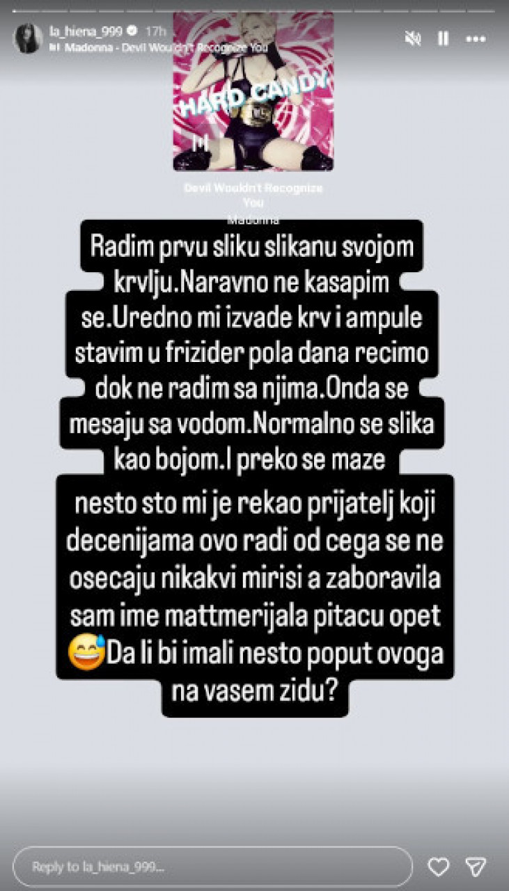 Dunja Ilić se nedavno pred izlazak novog albuma posvađala sa saradnicima, a sada je prava bura nastala na društvenim mrežama jer je otvoreno govorila o neobičnoj umetničkoj praksi - slikanju krvlju.