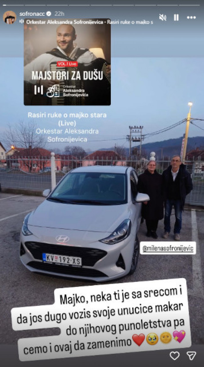 Sofronijević je sada iznenadio svoju majku i počastio je novim automobilom.