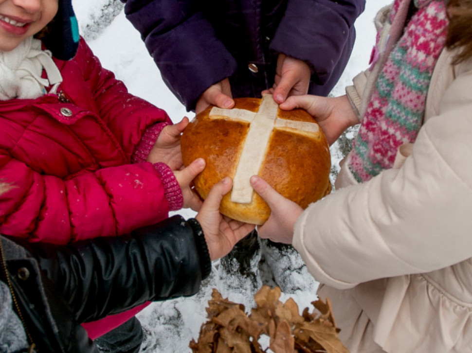 Za stolom domaćin deli česnicu svakom članu porodice, a veruje se da će onaj koji u svom delu kolača pronađe novčić ili dukat tokom cele naredne godine imati sreće, zdravlja i bogatstva.