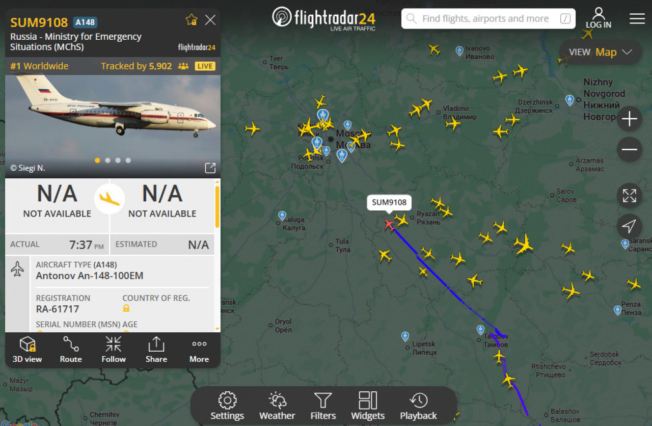 Prema dostupnim informacijama na servisu Flightradar, avion An-148-100EM, koji rusko Ministarstvo za vanredne situacije koristi kao „leteću bolnicu“, navodno je poleteo iz Groznog.