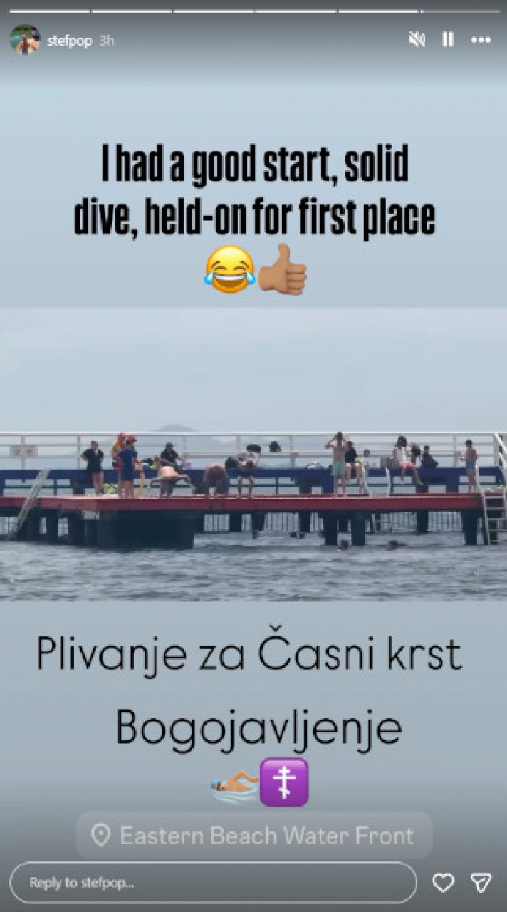 Nakon plivanja, Stefan i njegovi prijatelji su pozirali u moru, a voditelj je u ruci držao veliki krst i slao “srpski” pozdrav.