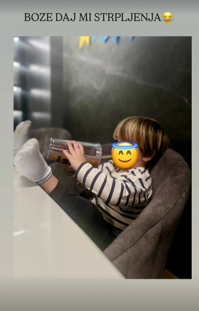 Marija Šerifović danas je objavila jednu simpatičnu fotografiju na kojoj dečak Mario sedi na stolici, nogu podignutih na stolu. On pije sok iz čase na slamku i doslovno uživa.