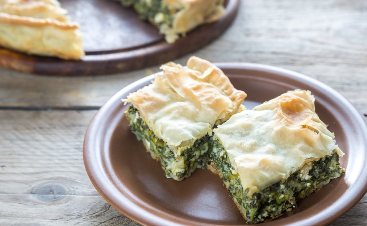 Rernu zagrejte na 180 stepeni. Operite dobro spanać pa ga očistite i kratko prokuvajte. Onda ga ocedite i sitno naseckajte. U jednoj velikoj posudi pomešajte mrvljeni sir, jaja, jogurt, seckani spanać i dobro posolite. Preko svake kore za pitu premažite malo ulja pa preko nanesite fil od spanaća i sira i uvaljajte u rolnice. Pitu premažite sa uljem i malo kisele vode dok korice ne omekšaju. Zatim pecite pitu oko 30 do 40 minuta, u rerni zagrejanoj na 180 stepeni, sve dok pita ne dobije zlatnu boju. Gotovu pitu na kraju pokrijte čistom krpom pa je ostavite da omekša.