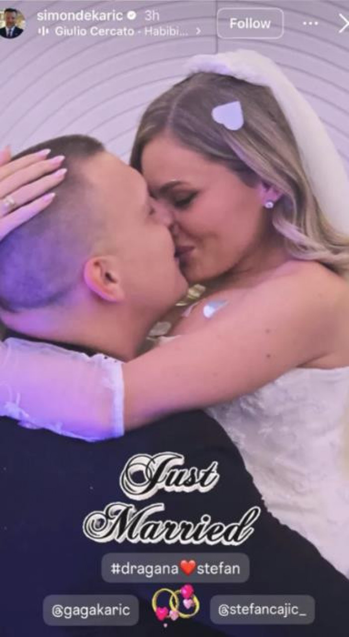 Simon de Karić, Draganin stric, podelio je fotku para uz poruku: "Upravo venčani".