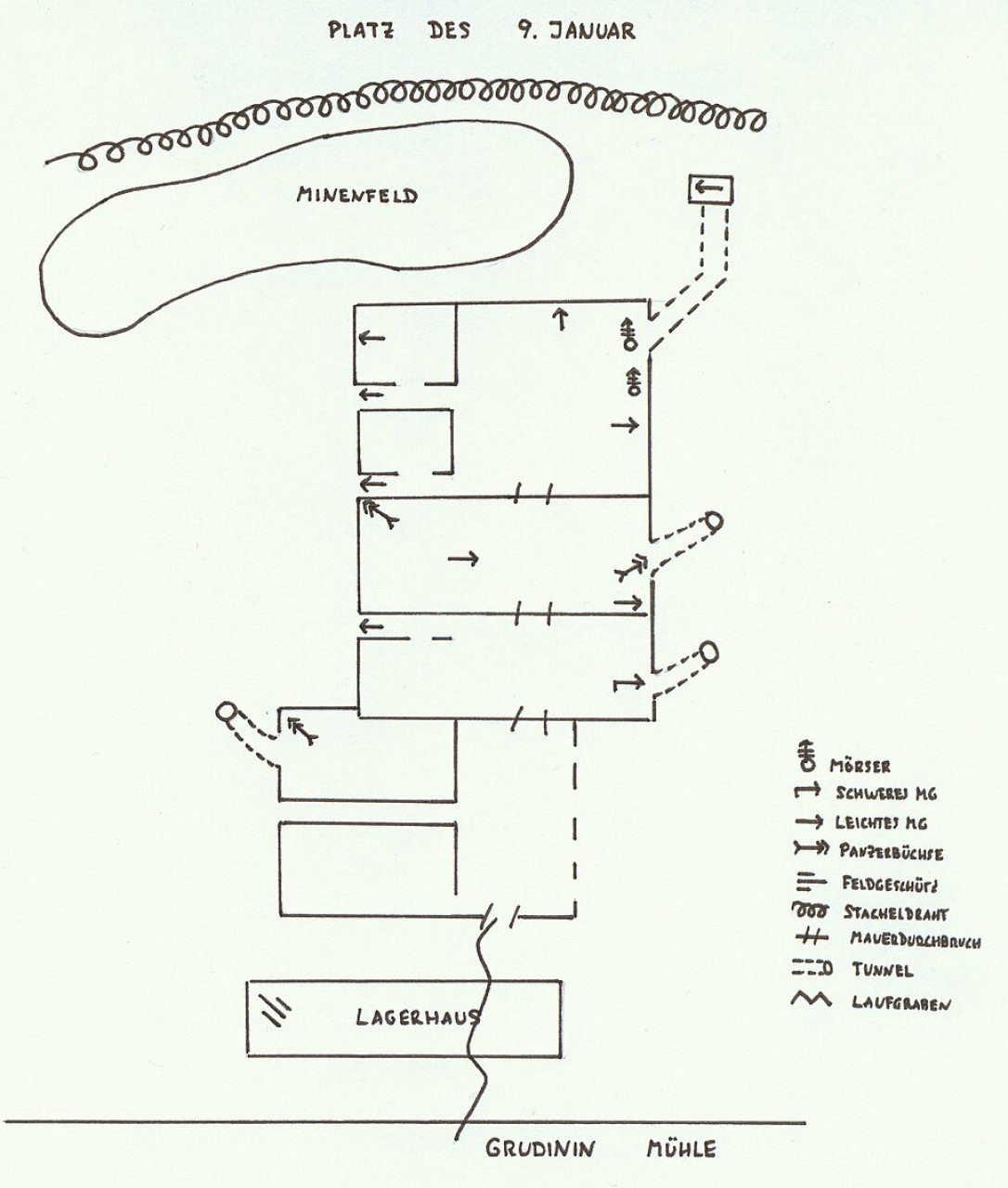 Ovaj primer je toliko istaknut jer su nemačke armije, koje su prethodno osvajale gradove, pa i cele zemlje za par nedelja, bile nesposobne da osvoje jednu polu-srušenu kuću, koju je tokom većeg dela vremena branilo samo nešto preko desetak vojnika, uprkos dvomesečnim pokušajima. Postoji podatak da je zgrada na Trgu devetog januara bila obeležena kao tvrđava na nemačkim mapama.