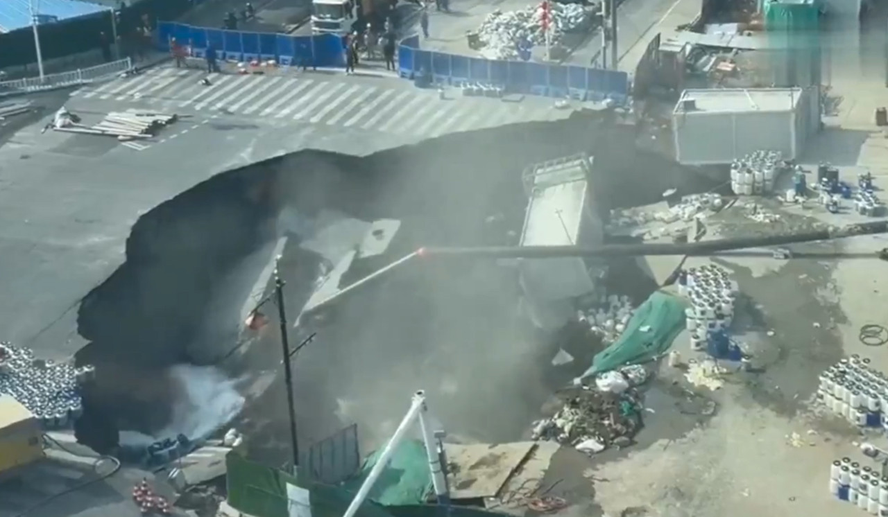Sigurnosne kamere u Šangaju zabeležile su trenutak kada se na jednoj od prometnijih gradskih saobraćajnica iznenada otvorila ogromna rupa koja je u trenu progutala značajan deo puta.