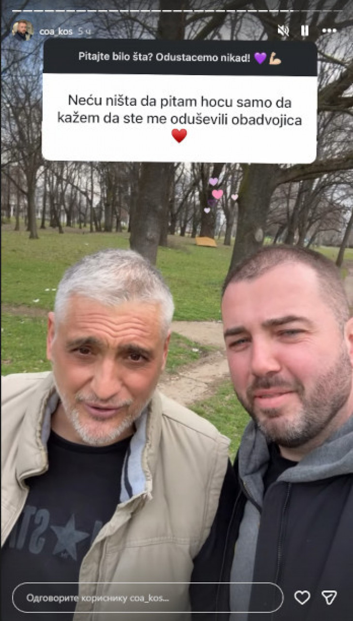 Par je izašao da prošetaju pse i bio je odlično raspoložen. Čedomir je bio u prsluku i patikama, dok su obojica uživali u šetnji do obližnjeg parka. Takođe su podelili stori sa pitanjima publike. Dobili su pohvale od pratioca koji su oduševljeni njima.
